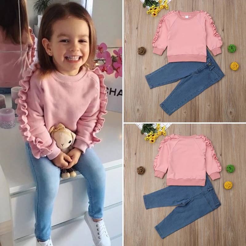 Buy 1-6Years Toddler Kids Baby Girls Clothes Ruffle Tops+Denim Pants Jeans 2pcs Set Warm casual Outfit Right Here and Right Now Just for USD US $8.10, Price will be rise up at any time without notification and I cant guaranted that the stock is still available tommorow or next hour. So Please Save It Now!