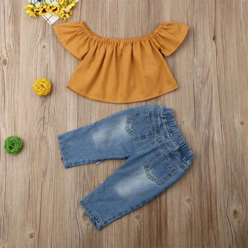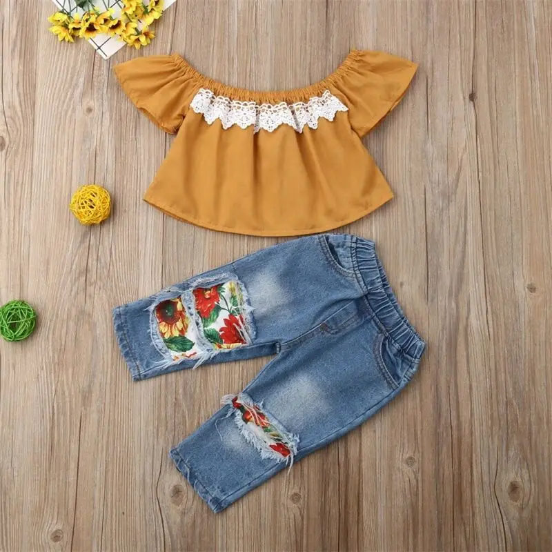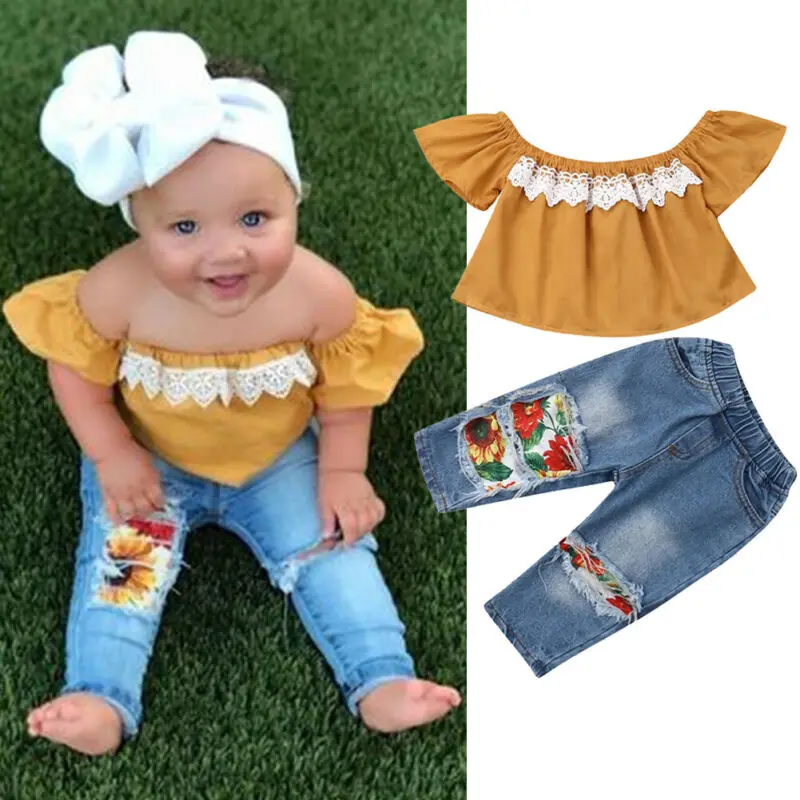 Buy 2Pcs Baby Girl Lace Shirt Tops + Denim Jeans Ripped Sunflower Pants Outfits Casual Clothes Right Here and Right Now Just for USD US $8.40, Price will be rise up at any time without notification and I cant guaranted that the stock is still available tommorow or next hour. So Please Save It Now!