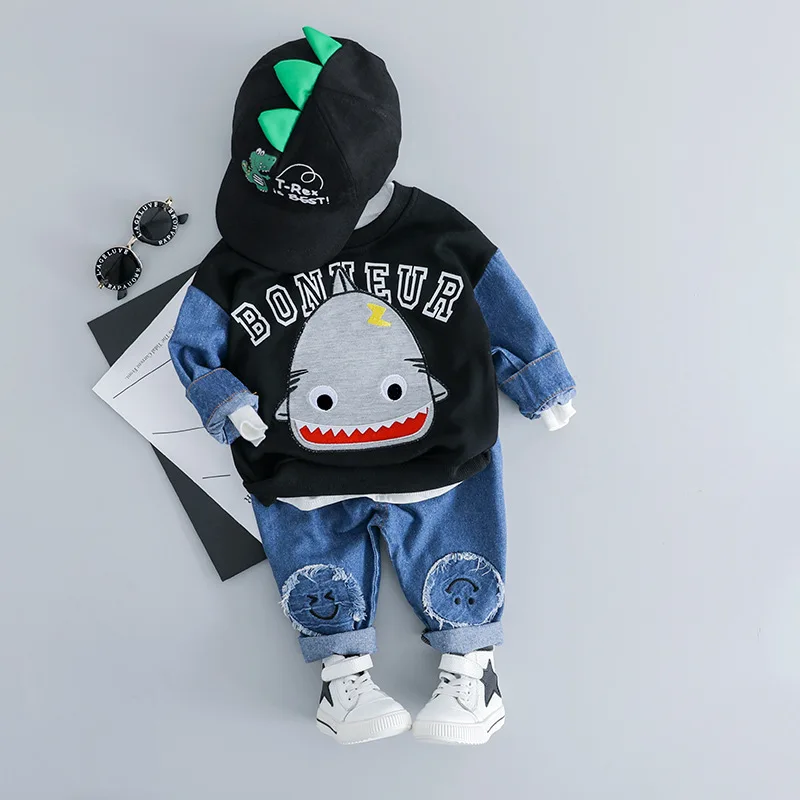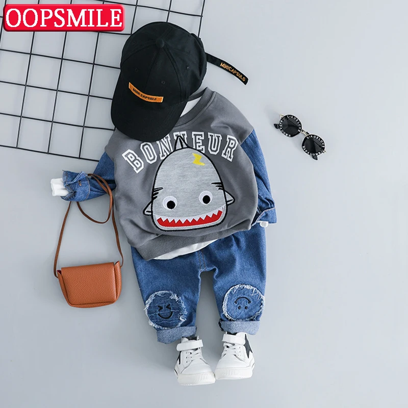 Good Chance of Baby Boys Clothing Set Spring Cartoon Shark T shirt + Jeans For Toddler Outfit 1 2 3 4 Years Infant
