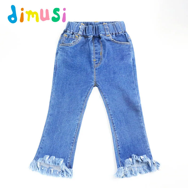 Best Price of DIMUSI Autumn Girl's Ripped Jeans Children Cotton Long Tassel Denim Jeans Baby Kids Casual Outwear