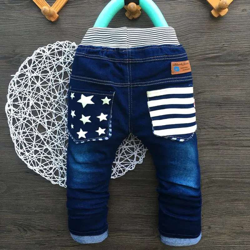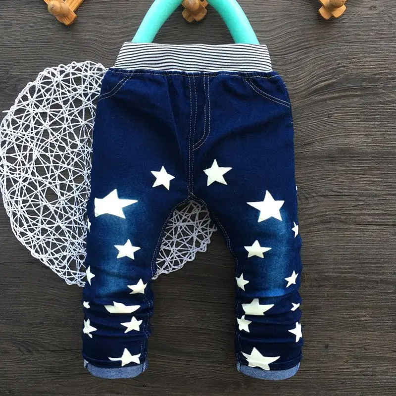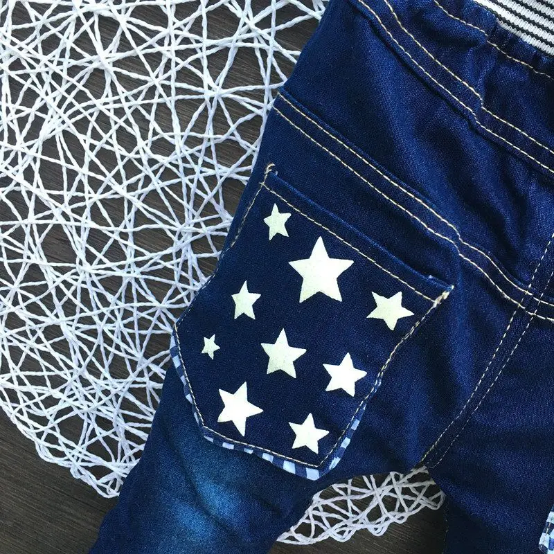 Best Price for Elastic Waist Children Boy Jeans Print Star Boys Straight Outerwear Baby Pants Casual Trousers Kids