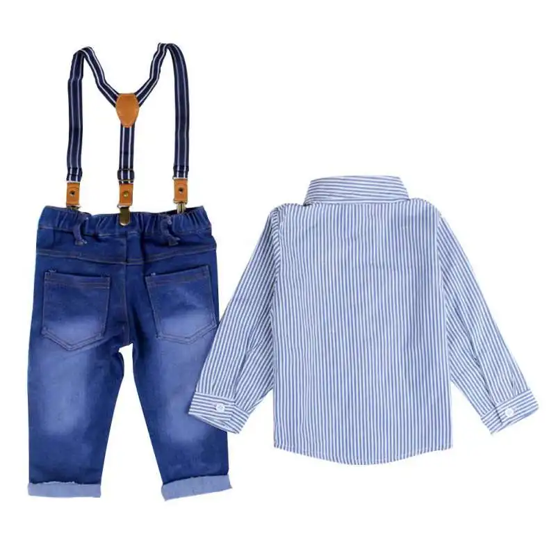 Special Offer for Spring Kid Clothing Sets Baby Boy Suspender Gentlement Suits Overalls Jeans+ Striped Full Shirt 2pc